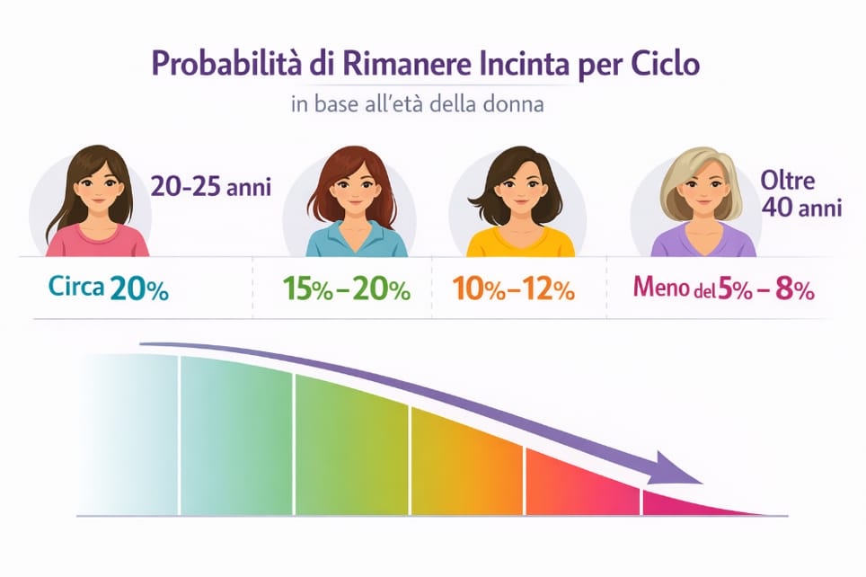 - Tra i 20 e i 25 anni, la probabilità di rimanere incinta per ciclo è intorno al 20%.